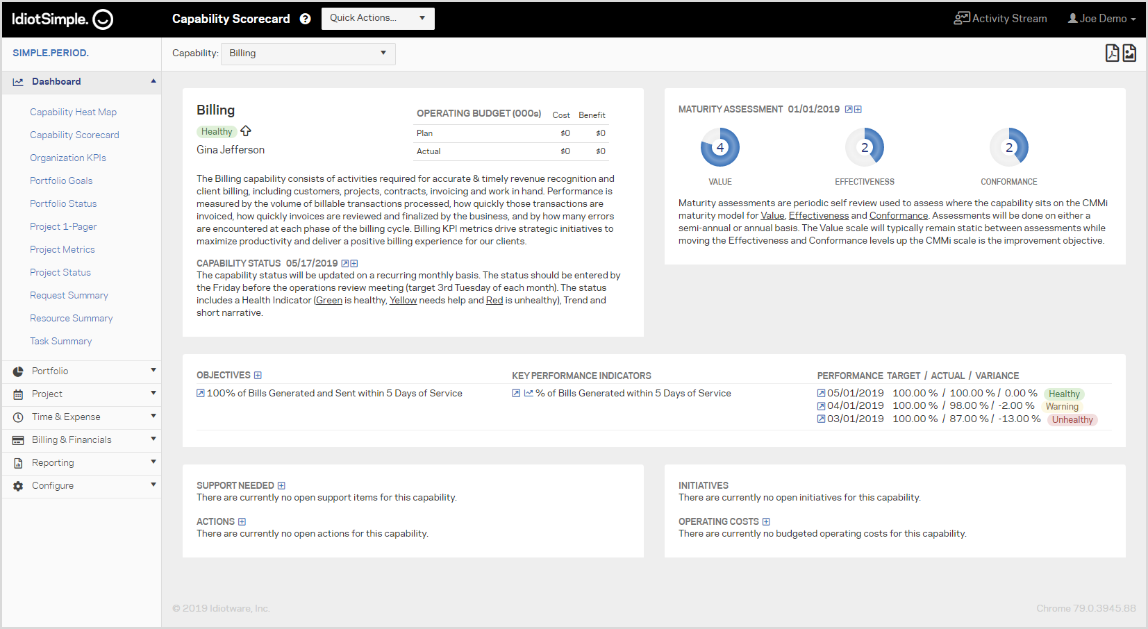 Visualize and facilitate operational health discussion of capabilities through dynamic scorecards.